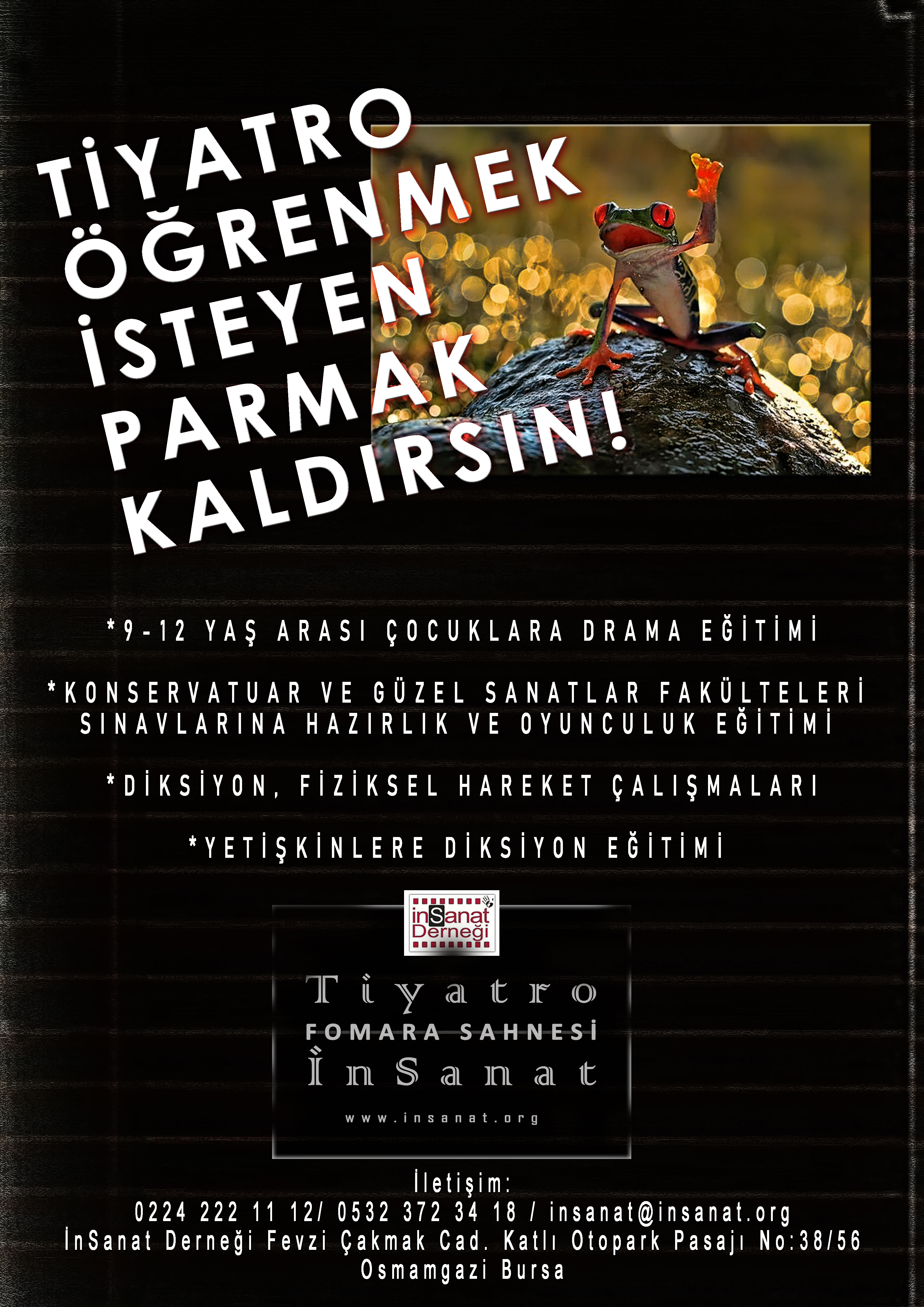 İnSanat, tiyatro öğrenmek, çocuklarına drama eğitimi vermek isteyen veya konservatuvarların tiyatro bölümlerine hazırlanmayı düşünenler öğrenciler ve yetişkinler için kurs açtı. Kurslar tiyatro oyuncusu Tarık Şenocak yönetiminde gerçekleşecek!
